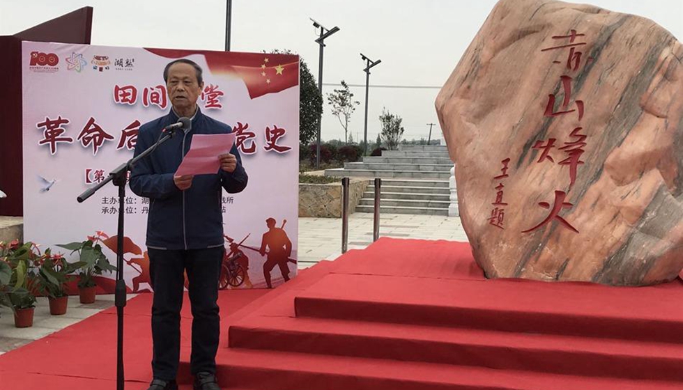 南京江寧抗日烈士后人陶和壽在“田間課堂”講述父親的革命故事。人民網(wǎng) 顧姝姝攝
