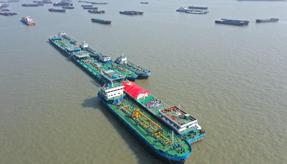 南通市崇川區(qū)虹橋街道把“虹干線”黨史理論學(xué)習(xí)專列開(kāi)到了長(zhǎng)江上。
