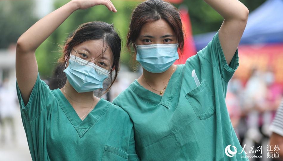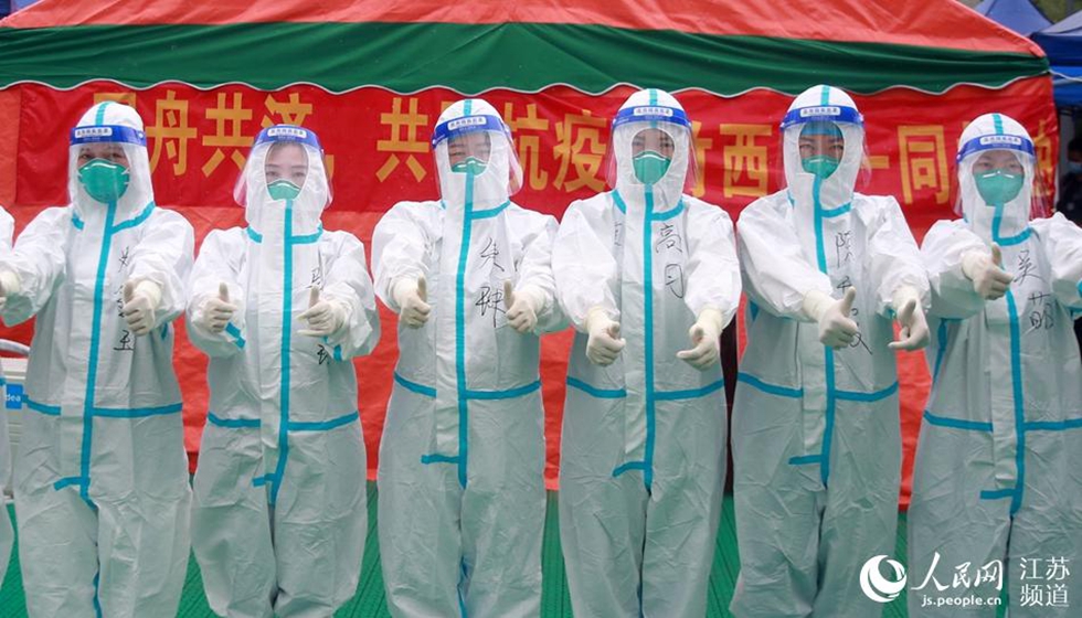 揚州戰(zhàn)“疫”天使工作結(jié)束后比心