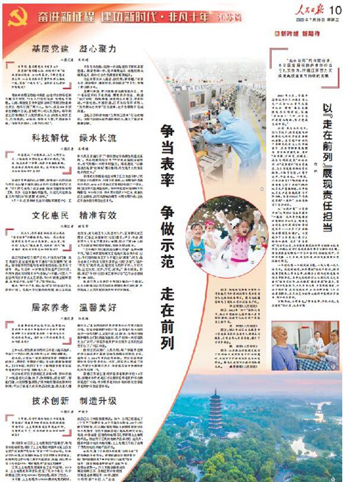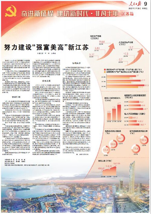 黨的十八大以來,在習(xí)近平新時代中國特色社會主義思想指引下,江蘇廣大干部群眾勇?lián)姑㈨频Z奮進,以創(chuàng)新引領(lǐng)布局現(xiàn)代產(chǎn)業(yè)體系,以綠色發(fā)展實現(xiàn)生態(tài)環(huán)境根本好轉(zhuǎn),以協(xié)調(diào)共享繪就共同富裕新圖景,在推動高質(zhì)量發(fā)展方面不斷取得新的成績。