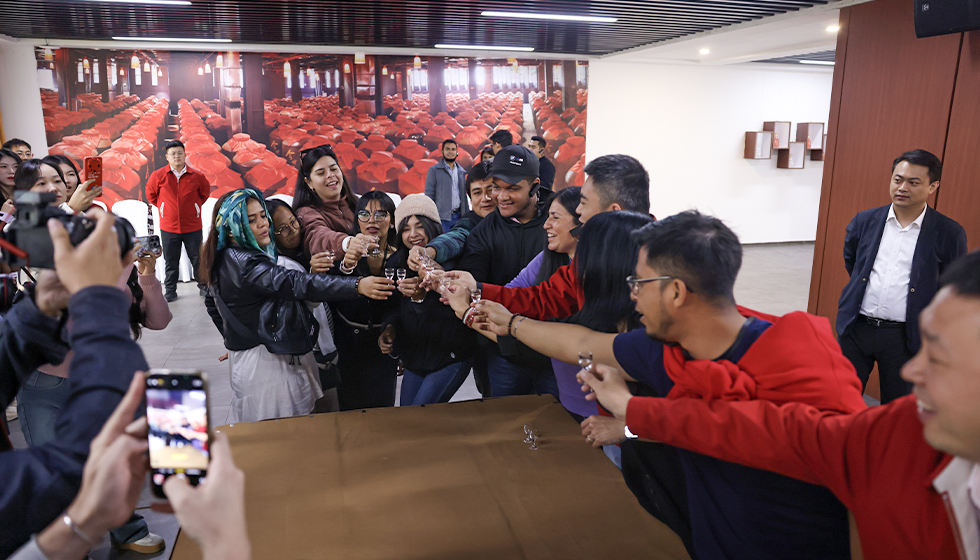 在淮安一家現(xiàn)代化酒企品嘗中國白酒。