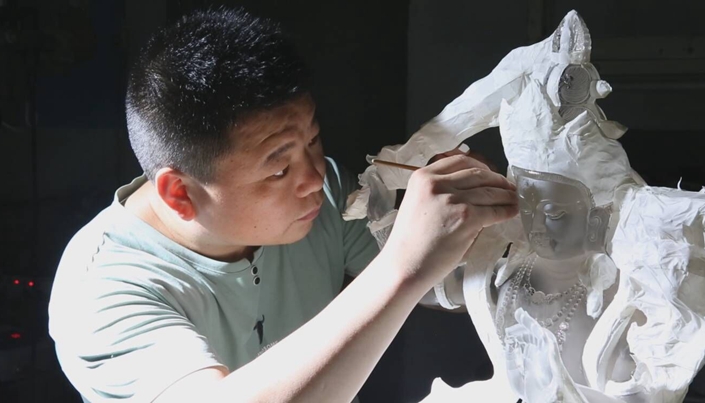 正在精雕細琢中的水晶工藝品