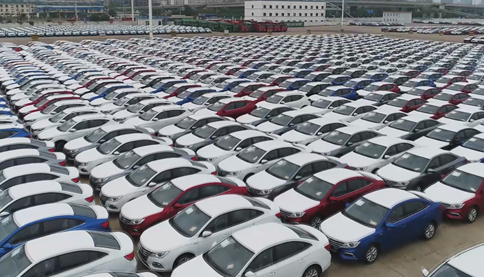 連云港港準備出口的汽車