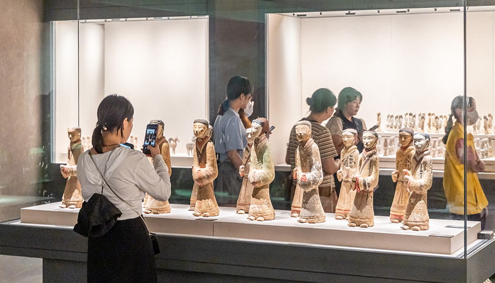 游客在徐州博物館欣賞展出的西漢陶俑。孫博宇攝