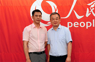 南京同仁醫(yī)院院長(zhǎng)于振坤(右)與人民網(wǎng)江蘇視窗總編輯汪崢嶸合影。