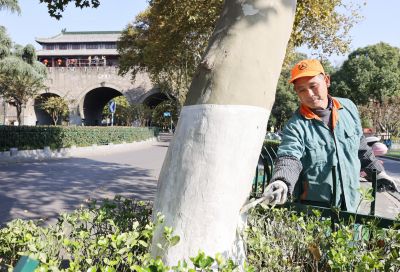 日前,鼓樓區(qū)園林養(yǎng)護工人正在給中山北路兩側的行道樹刷上特制“白衣”。這種由生石灰、硫磺調制成的“衣服”能有效阻止病蟲從樹干傷口處侵入過冬,同時白色可以將白天過多的陽光反射掉,從而降低樹干溫度減少溫差,樹皮就不容易凍裂了。 南報融媒體記者 徐琦攝…