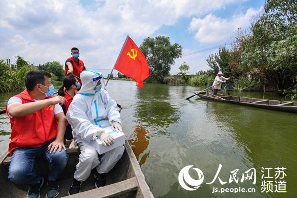 高淳黨員志愿者和醫(yī)護(hù)人員乘船到居民家中做核酸檢測(cè)。高淳區(qū)委宣傳部供圖 “我是黨員,我先上!”這是奮戰(zhàn)在南京高淳抗疫一線黨員們發(fā)自內(nèi)心的聲音。自祿口機(jī)場(chǎng)疫情發(fā)生以來(lái),高淳區(qū)黨員響應(yīng)號(hào)召,迅速前往村(社區(qū))一線,與廣大群眾齊心協(xié)力,共克時(shí)艱,共筑疫情防線。 村社區(qū)黨員“住”在…
