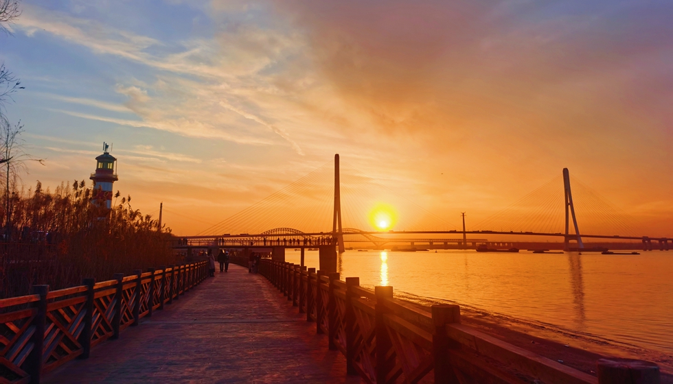 南京濱江公園因濱臨長江而名,作為南京生態(tài)園林城市的重要組成部分,是南京城市綠色客廳、山水城林之窗的代表。包括:河西濱江風(fēng)光帶(萬景園段、綠博園段、青年文化公園段、魚嘴魚背濕地公園段四個區(qū)域)、濱河風(fēng)光帶(濱河公園),以及河西中央公園、河西生態(tài)公園,總面積4.38平方公里,管理區(qū)域面積超過5平方公里。其中,河西濱江風(fēng)光帶北起北河口水廠,南至秦淮新河入江口,南北全長約11.5公里;濱河風(fēng)光帶為沿秦淮新河由大勝關(guān)大橋至繞城公路段,長4.8公里。濱江和濱河岸線全程將近17公里,共同構(gòu)成了鑲嵌在河西新城區(qū)邊沿的綠色生態(tài)廊道。河西新城通過一系列生態(tài)環(huán)保實踐,被評為國家級綠色生態(tài)示范城區(qū)。