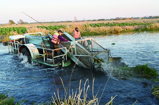 鹽都高標準提升生態(tài)環(huán)境質(zhì)量,持續(xù)打好藍天、碧水、凈土保衛(wèi)戰(zhàn),推進PM2.5和臭氧濃度“雙控雙減”,爭創(chuàng)“中國天然氧吧”;修復“五蕩”濕地生態(tài),實施河道綜合治理,確保國省考斷面持續(xù)穩(wěn)定達標。圖為大岡鎮(zhèn)環(huán)衛(wèi)人員正在打撈河道水草及垃圾?!?/a>