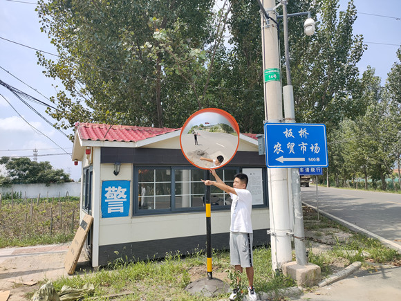 板橋街道張艞村在路口安裝凸面廣角鏡立柱,為村民出行安全保駕護(hù)航。祁圓圓攝 日前,在連云港市連云區(qū)板橋街道張艞村鴻橋花園安置小區(qū)出入口及門前三岔路口,4根嶄新亮相的凸面廣角鏡立柱吸引了村民們的目光?!斑@個三岔路口存在視線盲區(qū),有了新鏡子,我們開車、步行都安全了許多?!贝妩h支部的…