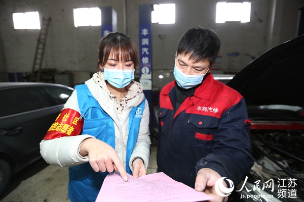 圖為揚(yáng)州一社區(qū)志愿者向企業(yè)員工倡導(dǎo)就地過年 董輝攝 “最近,疫情比較嚴(yán)重,為了降低病毒傳染的可能性,也為了您和家人的健康,我們建議您就在揚(yáng)州過年,等年后疫情平穩(wěn)了再回家看看!1月21日,在江蘇揚(yáng)州豐潤(rùn)汽修廠,石橋社區(qū)疫情防控志愿者呂琳向來?yè)P(yáng)務(wù)工人員趙從玖和他的工友們遞上了《…