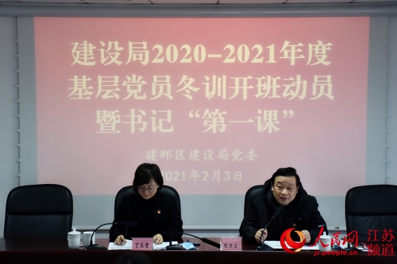 建鄴區(qū)建設局2020-2021年度基層黨員冬訓開班動員會現(xiàn)場 朱磊攝 一年之計在于春。2月3日是立春節(jié)氣,南京市建鄴區(qū)建設局基層黨員冬訓工作正式啟動。建鄴區(qū)建設局創(chuàng)新黨員冬訓模式,以“四個一”豐富黨員學習內(nèi)容,即召開一次動員部署會、書記帶頭講一次黨課、開展一次黨風廉政警示教育…