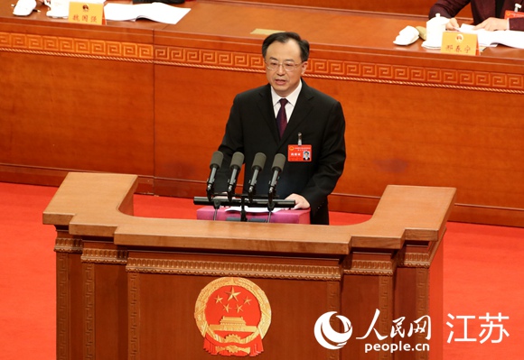 江蘇省長吳政隆代表省人民政府向大會作政府工作報告。王新年攝