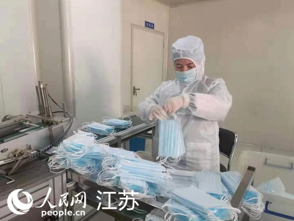 淮安市中興醫(yī)藥科技有限公司提前恢復(fù)口罩產(chǎn)能,工人兩班倒全速生產(chǎn);窗矃^(qū)委宣傳部供圖