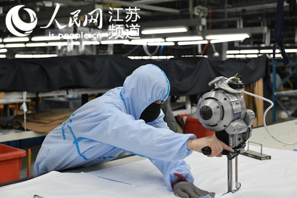 紅豆股份防護服生產現場。企業(yè)供圖