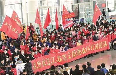 2月11日下午,由310名醫(yī)護(hù)人員組成的首批江蘇支援黃石醫(yī)療隊(duì)啟程趕赴湖北。省長(zhǎng)吳政隆到南京祿口機(jī)場(chǎng)為隊(duì)員們壯行,代表省委、省政府和省委書(shū)記婁勤儉,以及全省人民向即將奔赴火線的醫(yī)務(wù)工作者表示衷心感謝、致以崇高敬意,期盼白衣戰(zhàn)士們捷報(bào)頻傳、平安凱旋。