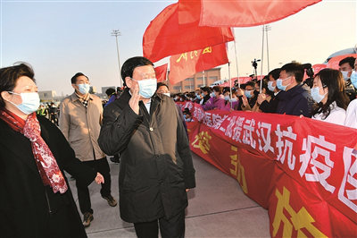 前幾天,我為第五批支援湖北醫(yī)療隊(duì)壯行,也是為所有支援湖北的同志們加油吶喊。我和八千萬父老鄉(xiāng)親,期盼你們?cè)缛掌桨矂P旋!