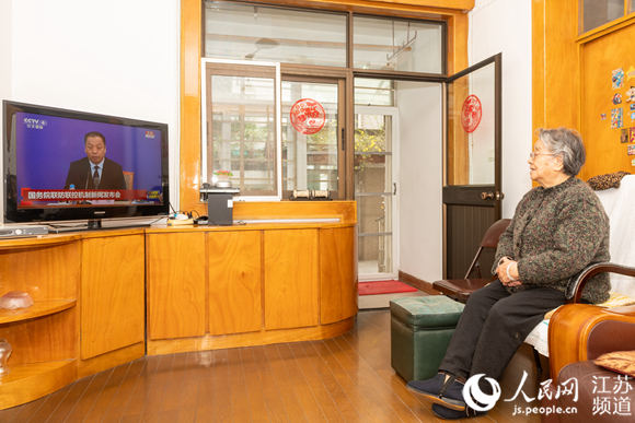 王珍老人在收看戰(zhàn)疫新聞 黃堃供圖