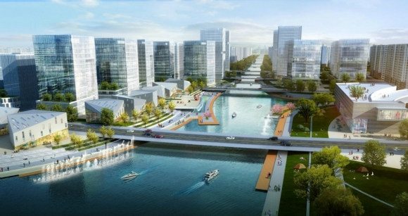 “韓風(fēng)國(guó)際文化名城整體上并非傳統(tǒng)高樓林立的水泥森林,而是以人性化尺度打造適宜慢行的精致城市空間。”據(jù)主持設(shè)計(jì)韓風(fēng)國(guó)際文化名城的設(shè)計(jì)師時(shí)匡介紹,韓風(fēng)國(guó)際文化名城布局了核心組團(tuán)、高端商貿(mào)組團(tuán)、生態(tài)水岸社區(qū)組團(tuán)等三大功能組團(tuán)。核心組團(tuán)包含“一中心四街區(qū)”,整體風(fēng)貌以現(xiàn)代風(fēng)格的高層塔樓群為主,強(qiáng)調(diào)街區(qū)的連續(xù)性與統(tǒng)一性,凸顯國(guó)際品質(zhì)。