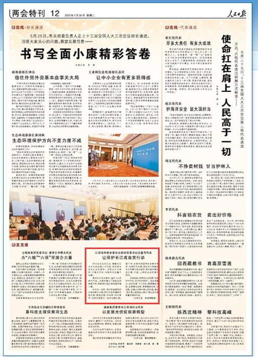 作為生長(zhǎng)在長(zhǎng)江邊、喝著長(zhǎng)江水長(zhǎng)大的全國(guó)人大代表,我非常關(guān)注長(zhǎng)江生態(tài)保護(hù)。共抓長(zhǎng)江大保護(hù)、不搞大開發(fā),永聯(lián)村對(duì)此毫不含糊。
