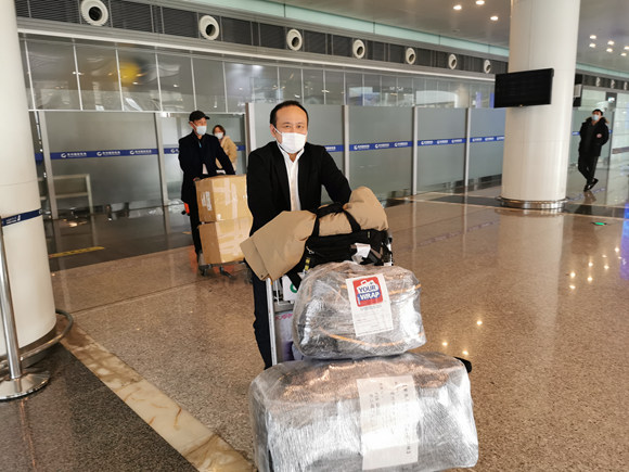 時間拉回1月30日上午,新北區(qū)商務局副局長張貝鴻到常州奔牛機場接人。3個小時前,本多勇人帶著2000只口罩在大阪登機。見到他推著一大一小兩箱口罩過來,張貝鴻很受感動。沒有過多寒暄,他們緊急把口罩送到抗疫一線。