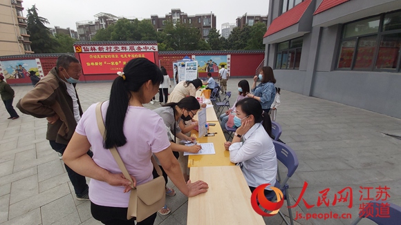 圖為仙林新村“送崗進(jìn)千家”招聘會現(xiàn)場,居民登記就業(yè)信息。耿志超攝