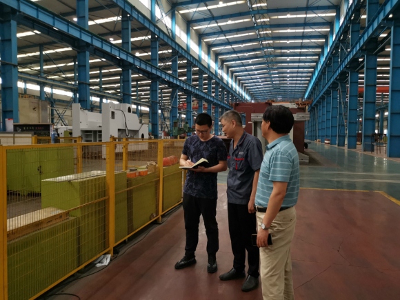 姜中尊(左一)在當(dāng)?shù)仄髽I(yè)走訪服務(wù) 張玉峰攝