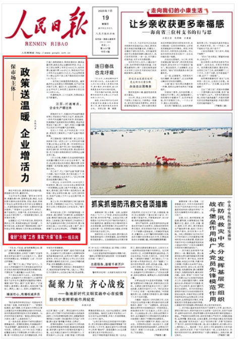 《人民日報(bào)》2020年7月19日1版 版面截圖