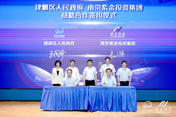人民網(wǎng)南京8月6日電 (記者朱殿平)6日,南京市建鄴區(qū)人民政府和南京紫金投資集團(tuán)簽署戰(zhàn)略合作協(xié)議,雙方將在金融服務(wù)、創(chuàng)新投資、金融載體、智慧城市、產(chǎn)業(yè)發(fā)展、人才交流等領(lǐng)域開展深入合作,加大金融助力實(shí)體經(jīng)濟(jì)發(fā)展力度,加速產(chǎn)業(yè)結(jié)構(gòu)優(yōu)化升級(jí),實(shí)現(xiàn)資源共享、優(yōu)勢互補(bǔ)、互利共贏。