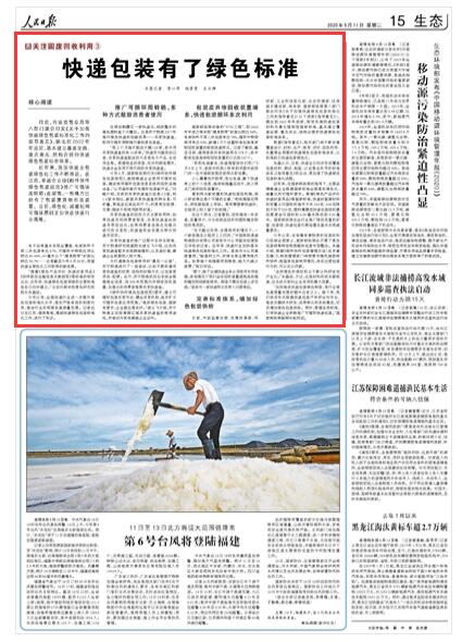 人民日報:快遞包裝有了綠色標(biāo)準(zhǔn)(關(guān)注固廢回收利用③)