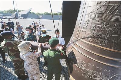 15日,紀(jì)念館舉行和平集會(huì),各界人士撞響和平鐘,共筑世界和平的愿景。 陳俊伊 萬(wàn)程鵬攝