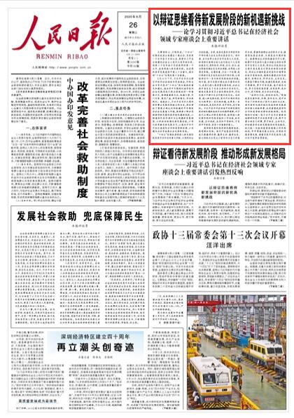 《 人民日?qǐng)?bào) 》2020年08月26日 第 01 版 版面截圖