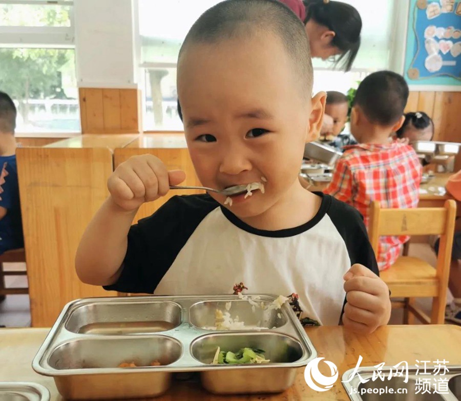 圖為無錫市一所幼兒園內(nèi),小朋友正在吃午餐。 無錫市委網(wǎng)信辦供圖