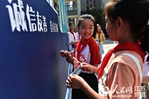 “過入學(xué)門、點朱砂、貼夢想貼……帶著孩子入學(xué)充滿了儀式感”,一位家長表示。學(xué)校還將自主創(chuàng)編的9首《三字歌》制作成文明卡分布在校園不同地點,在入學(xué)儀式之后,家長帶著孩子漫游校園,收集文明卡。