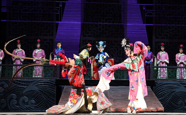 清代,諸腔繁盛,競相進(jìn)京,奪得內(nèi)廷賞賜紅綾花球者方可入宮獻(xiàn)藝。徽班頭牌肖叫天與漢調(diào)名角黑山爭勝,樂親王青睞漢調(diào),納格格暗慕肖叫天。王提督因私欲欺凌藝人,黑山、肖叫天因紅綾花球雙雙身陷囹圄。肖叫天獄中鼓舞心灰意冷的黑山重拾信念。納格格探獄,徽調(diào)、漢調(diào)、昆曲三戲合璧,啟發(fā)肖叫天博采眾長,革新徽韻。樂親王以戲班進(jìn)宮之命,責(zé)令王提督放人;瞻喟嘀魍衾习逵そ刑鞖w來,并吸納黑山加盟。一面是王提督的報(bào)復(fù)勒索,一面是進(jìn)宮日期迫近卻懸而未定,徽班內(nèi)外交困,納格格挺身而出,并與肖叫天情愫相生。徽班守得云開見月明,徽班宮中展新姿,得到樂親王認(rèn)可,更獲太后贊賞,王提督狼狽不堪。肖叫天和黑山同捧紅菱花球到御前,太后為徽班賜名“小京班”,命其攜紅綾花球,到民間為百姓獻(xiàn)藝。