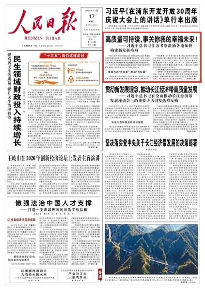 《 人民日報(bào) 》2020年11月17日 第 01 版 版面截圖
