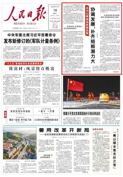《 人民日報 》2020年12月18日 第 01 版 版面截圖