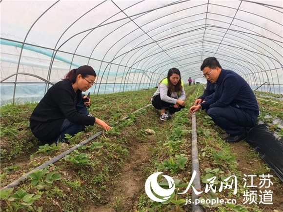 宿豫區(qū)農(nóng)業(yè)農(nóng)村局農(nóng)技專家為村民講授草莓管理知識(shí) 沈晶晶攝
