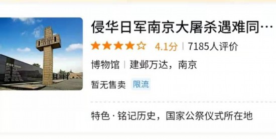此前,有網(wǎng)友發(fā)現(xiàn),在“美團(tuán)門票”平臺,侵華日軍南京大屠殺遇難同胞紀(jì)念館的“特色”一欄,標(biāo)注為“放松身心、休閑娛樂的好去處”。如此“說明”引發(fā)網(wǎng)友質(zhì)疑。
