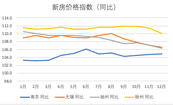 縱觀南京樓市2020全年新房價格,年初受疫情影響,1—3月份以0.1%的幅度輕微正負震蕩。進入4月后,樓市迅速解凍回溫、量價齊升,連續(xù)3個月房價漲幅超過1%。7月,房價迅速降溫,漲幅回落到0.1%,8、9兩個月漲幅歸零。此后大局已定,進入第四季度,漲幅最高未超過0.4%。