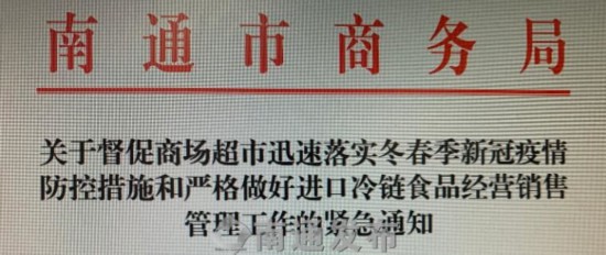 商場(chǎng)超市是人員密集的公共場(chǎng)所,是疫情防控的重點(diǎn)區(qū)域。記者15日南通從市商務(wù)局了解到,近期對(duì)部分商場(chǎng)超市進(jìn)行現(xiàn)場(chǎng)檢查的情況來看,還存在疫情防控措施落實(shí)不到位的一些問題。對(duì)此,南通市結(jié)合國(guó)家商務(wù)部《商場(chǎng)、超市疫情防控技術(shù)指南(第二版)》和實(shí)際情況,發(fā)出《關(guān)于督促商場(chǎng)超市迅速落實(shí)冬春季新冠疫情防控措施和嚴(yán)格做好進(jìn)口冷鏈?zhǔn)称方?jīng)營(yíng)銷售管理工作的緊急通知》,要求全市商場(chǎng)超市重點(diǎn)做好體溫檢測(cè)、個(gè)人防護(hù)、控制人流量等五項(xiàng)防控措施。