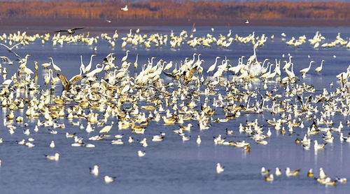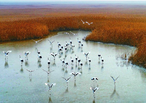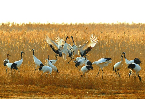 入冬以來,受冷空氣影響,灘涂水面結(jié)冰,形成丹頂鶴及其它鳥類大集群,場面非常壯觀。灘涂中擁有豐富的植物、魚類與底棲生物,可為不同食性的鳥類提供食物保障,丹頂鶴、東方白鸛、白枕鶴、白頭鶴、灰鶴、大天鵝等珍稀鳥類在鹽城越冬。保護區(qū)內(nèi)生物多樣性十分豐富,有動植物2600多種,其中鳥類416種。保護區(qū)有國家一級保護動物14種(其中鳥類11種),國家二級保護動物84種(其中鳥類69種)。通訊員 陳國遠(yuǎn) 記者 李思遠(yuǎn) 攝