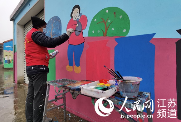 六合農(nóng)民畫是當(dāng)?shù)氐拇硇晕幕a(chǎn)品,于2012年和2016年先后被列入南京市和江蘇省非物質(zhì)文化遺產(chǎn)代表性作品名錄。1月22日,農(nóng)民畫作者梁師傅在冶山街道潘莊的墻體上進行垃圾分類農(nóng)民畫創(chuàng)作!斑@個村子大部分都是我畫的。”他說,農(nóng)民畫大紅大綠的艷麗色塊更容易吸睛,能更好起到宣傳效果。