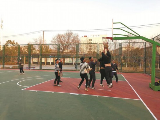 21日下午4時許,位于市區(qū)五一路的天健小游園球場熱鬧非凡,夕陽灑下的余暉讓這片方地更具活力。此時,10多名籃球愛好者正在球場上激烈拼爭,傳球、擋拆、投籃、爭搶籃板……小伙子們盡享運動帶來的樂趣。