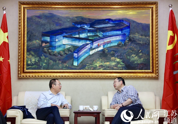 人民日報社江蘇分社社長何聰(右)與胡敏強一行座談