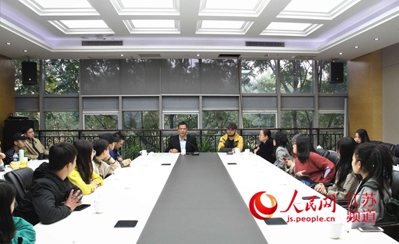 人民網(wǎng)江蘇頻道總編輯汪崢嶸對長安大學師生一行表示熱烈歡迎,為師生們介紹了當前媒體行業(yè)發(fā)展現(xiàn)狀,并就大家關(guān)心的新聞采編、傳播方式、輿情熱點、“網(wǎng)紅現(xiàn)象”和人才就業(yè)等話題,與同學們進行了互動交流。
