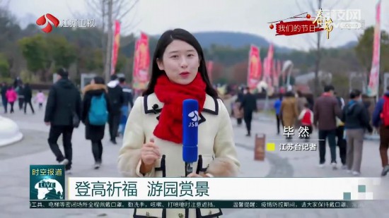 江蘇臺記者畢然說:“新年登高一直是中國人傳統(tǒng)的習俗,寓意著新年步步高升。大年初一,不少市民來到南京牛首山登高祈福,為來年求一個好彩頭!