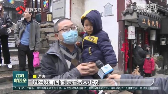 游客說:“很有江南水鄉(xiāng)過年的氛圍。過年沒有回家,帶著老人小孩一起來感受一下,挺好的。”