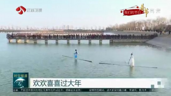 在徐州督公湖景區(qū),游客們的目光被水上的表演吸引,兩位演員正在展示“水上漂”的技藝,這是一種發(fā)源于赤水河流域的民間絕技“獨(dú)竹漂”,演員們腳踩一根楠竹,漂行水上如履平地。喜慶的鑼鼓敲起來,舞龍舞獅耍起來。一大早,在蘇州網(wǎng)紅淮海街,滿眼都是中國年味。