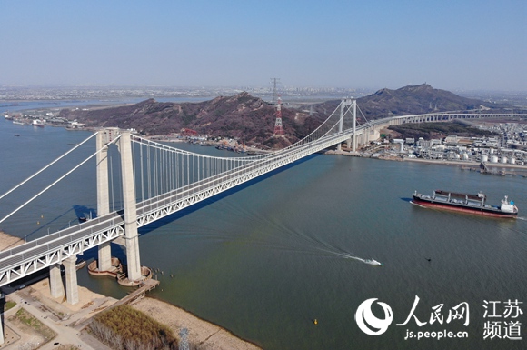 春節(jié)期間,鎮(zhèn)江海事局護航大型船舶通過五峰山大橋。劉玉寶攝